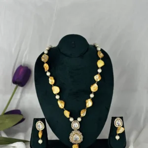 The matching earrings mirror the pendant design, creating a perfectly coordinated set. Designed to drape elegantly over ethnic outfits, this long necklace set is ideal for weddings, bridal functions, festive occasions, and traditional ceremonies. Pair it with sarees, lehengas, or anarkalis to achieve a classic royal look.